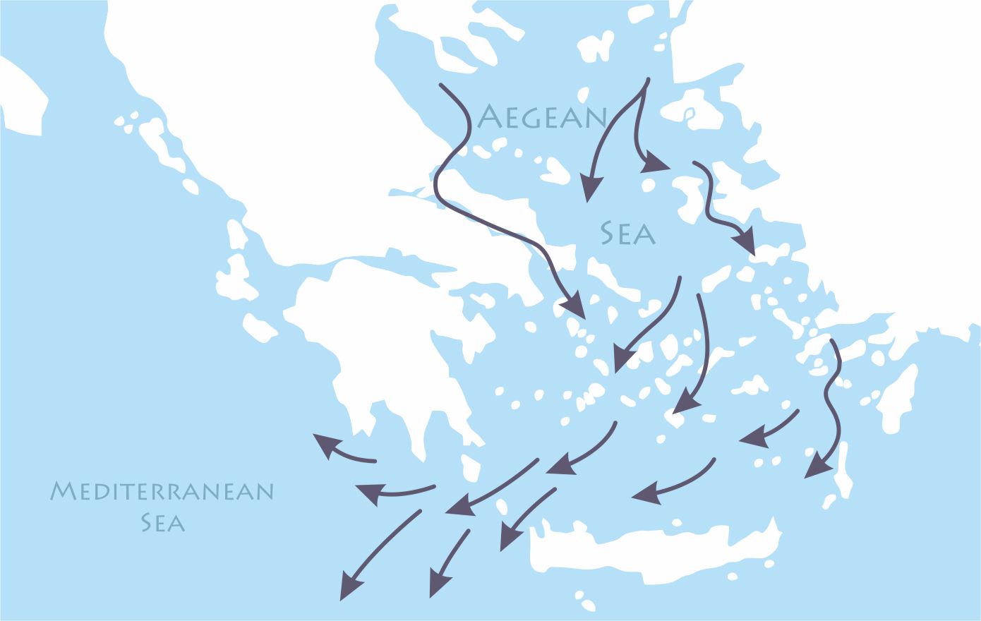 | Imagem 66 – Esquema das correntes no mar Egeu. |