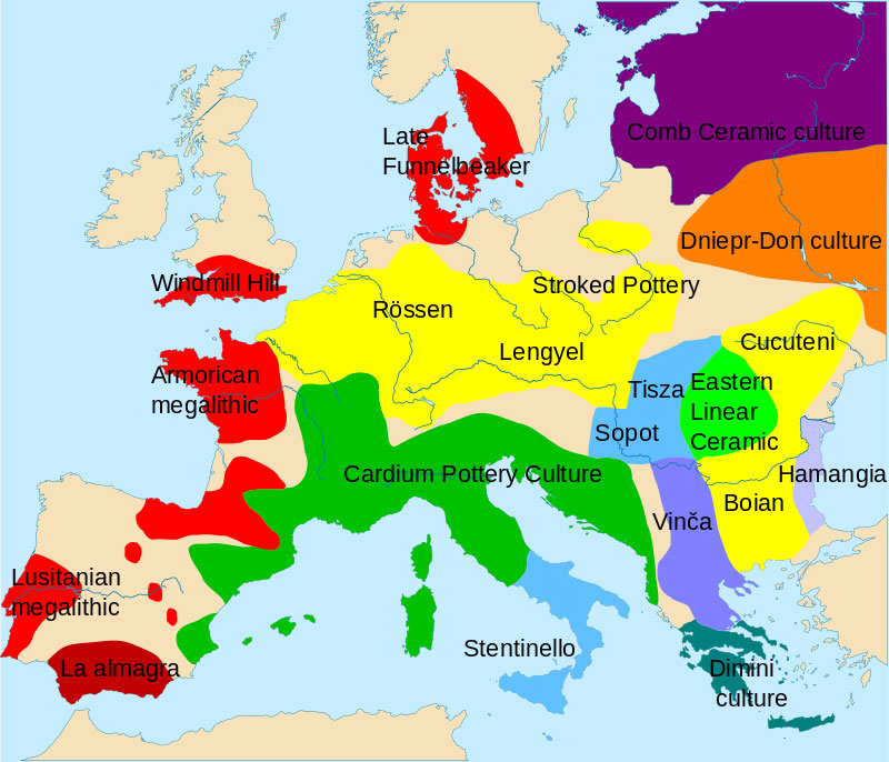 Imagem 7 – Mapa com a distribuição dos principais centros das culturas Neolíticas na Europa, cerca 3500 a. C. |